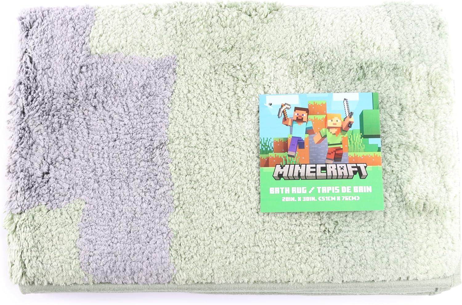 Jay Franco Disney Frozen ICY Tufted Polyester Bath Rug, Kids Bath Features Elsa, Anna, & Olaf (Official Disney Product)(Green – Minecraft)