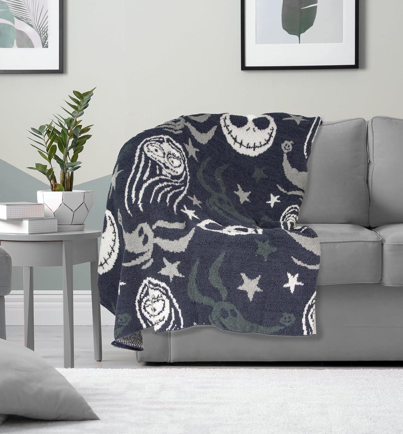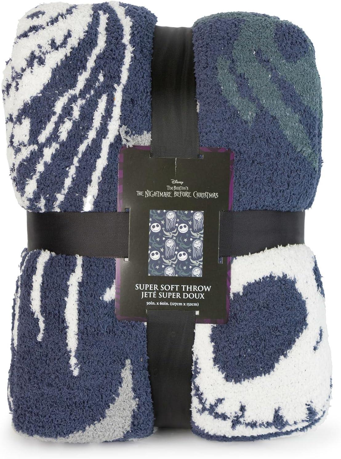 Jay Franco Disney Minnie Mouse Feather Knit Fluffy Throw Blanket for Girls - Light Pink Bows Fuzzy Blanket Measures 50 x 60 inch | Super Soft Lightweight Bedding(Blue - Nightmare Before Christmas)