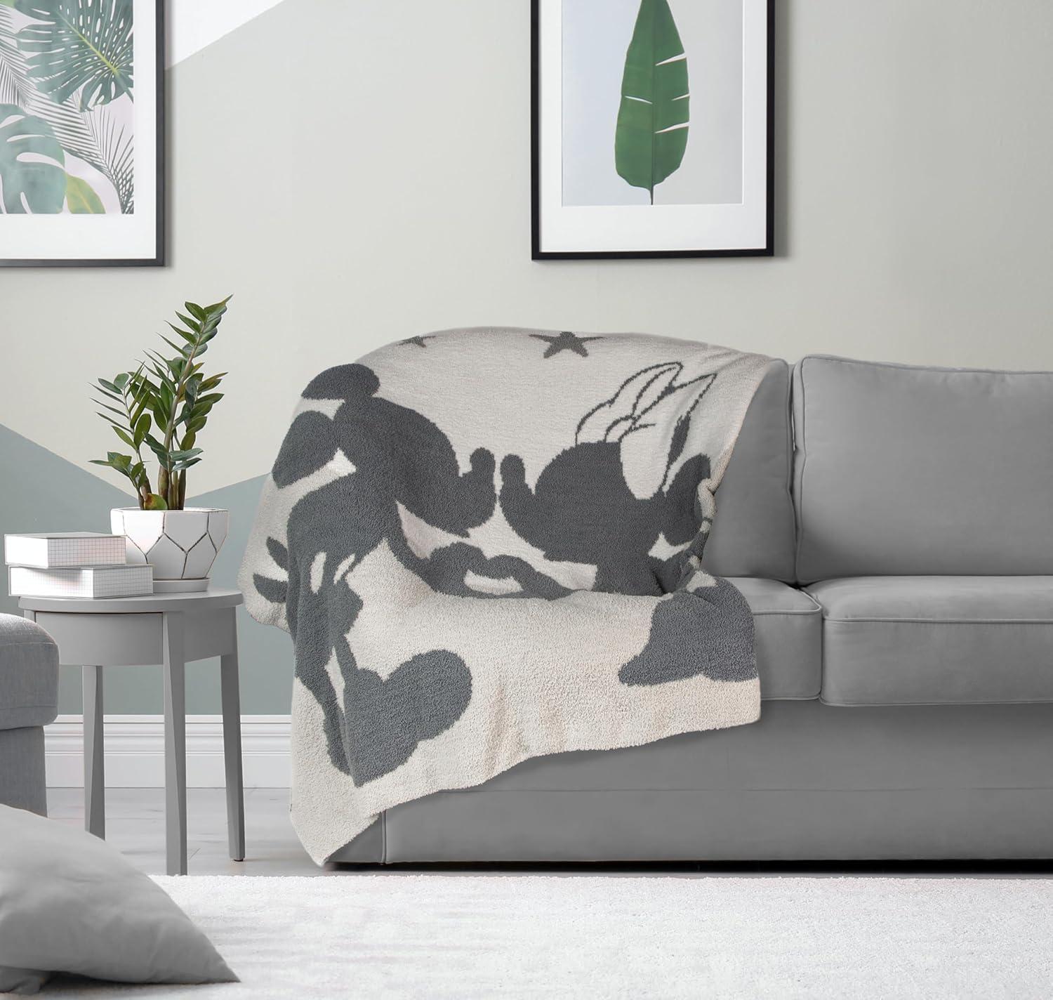 Jay Franco Disney Minnie Mouse Feather Knit Fluffy Throw Blanket for Girls - Light Pink Bows Fuzzy Blanket Measures 50 x 60 inch | Super Soft Lightweight Bedding(Gray - Mickey & Minnie)