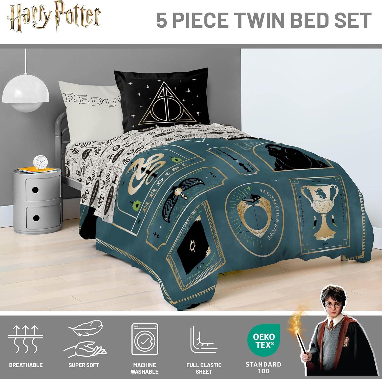 imageJay Franco Kids Comforter Set Includes Sheets and Pillow Covers  Soft and Cozy Bed Set for Stylish Room Decor Black  Marvel Comics 7 Piece Queen Size BeddingBlue  Harry Potter