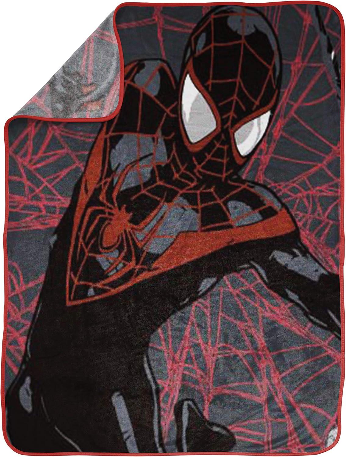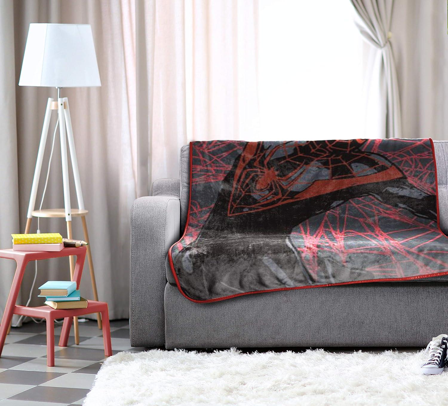 Jay Franco Kids Plush Throw Blanket – 46 x 60 Inch Soft & Cozy Fleece Throw for Bedroom & Living Room Décor, Official Licensed Product, Green – Zootopia(Black - Spiderman)
