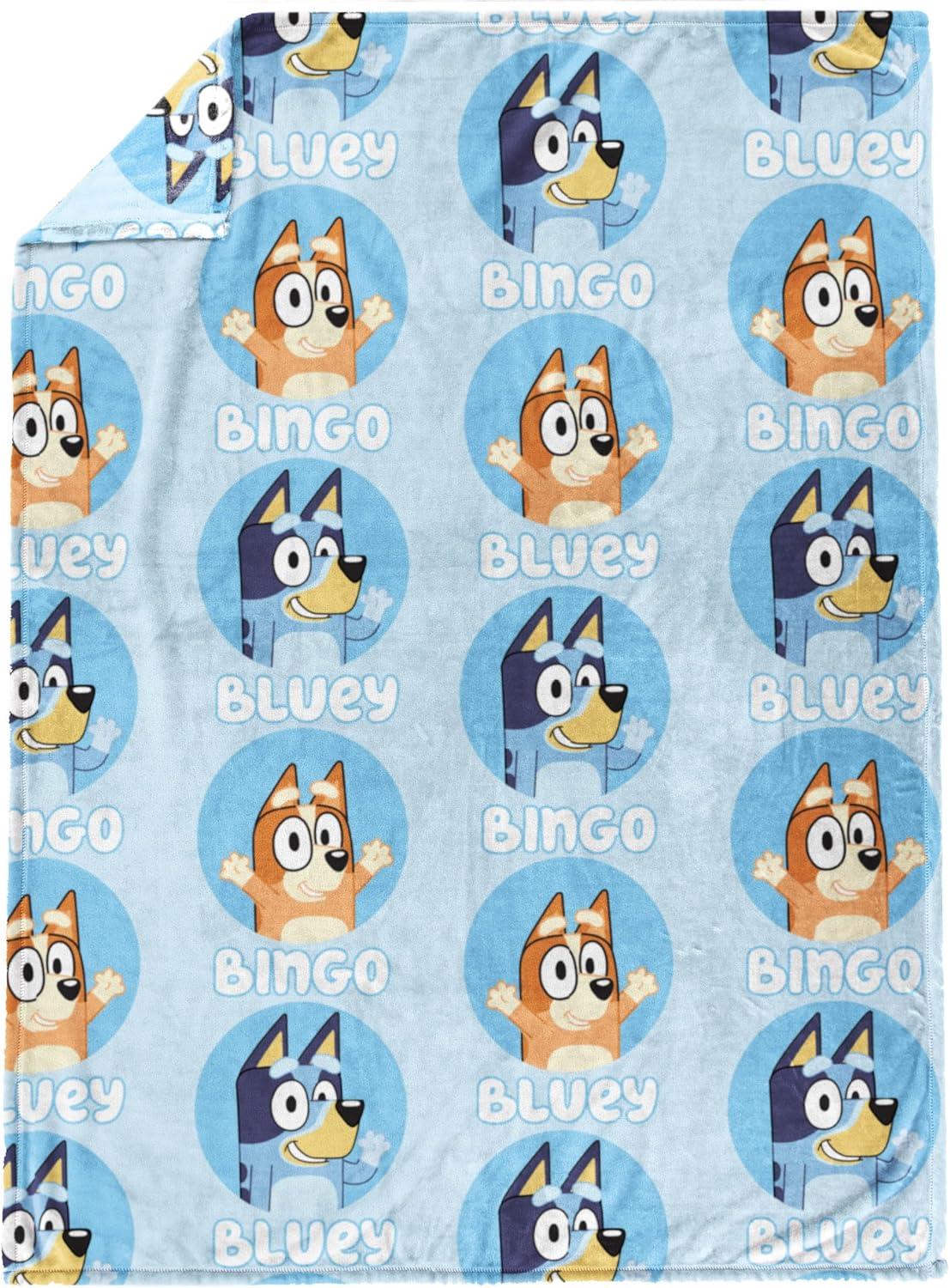 Jay Franco Kids Plush Throw Blanket – 46 x 60 Inch Soft & Cozy Fleece Throw for Bedroom & Living Room Décor, Official Licensed Product, Green – Zootopia(Blue – Bluey)