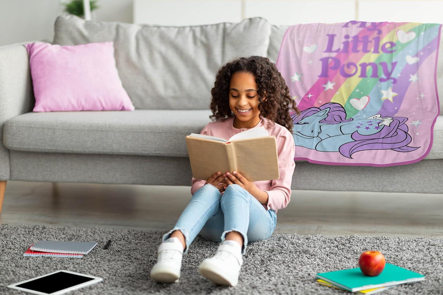 Jay Franco Kids Plush Throw Blanket – 46 x 60 Inch Soft & Cozy Fleece Throw for Bedroom & Living Room Décor, Official Licensed Product, Green – Zootopia(Pink - My Little Pony)