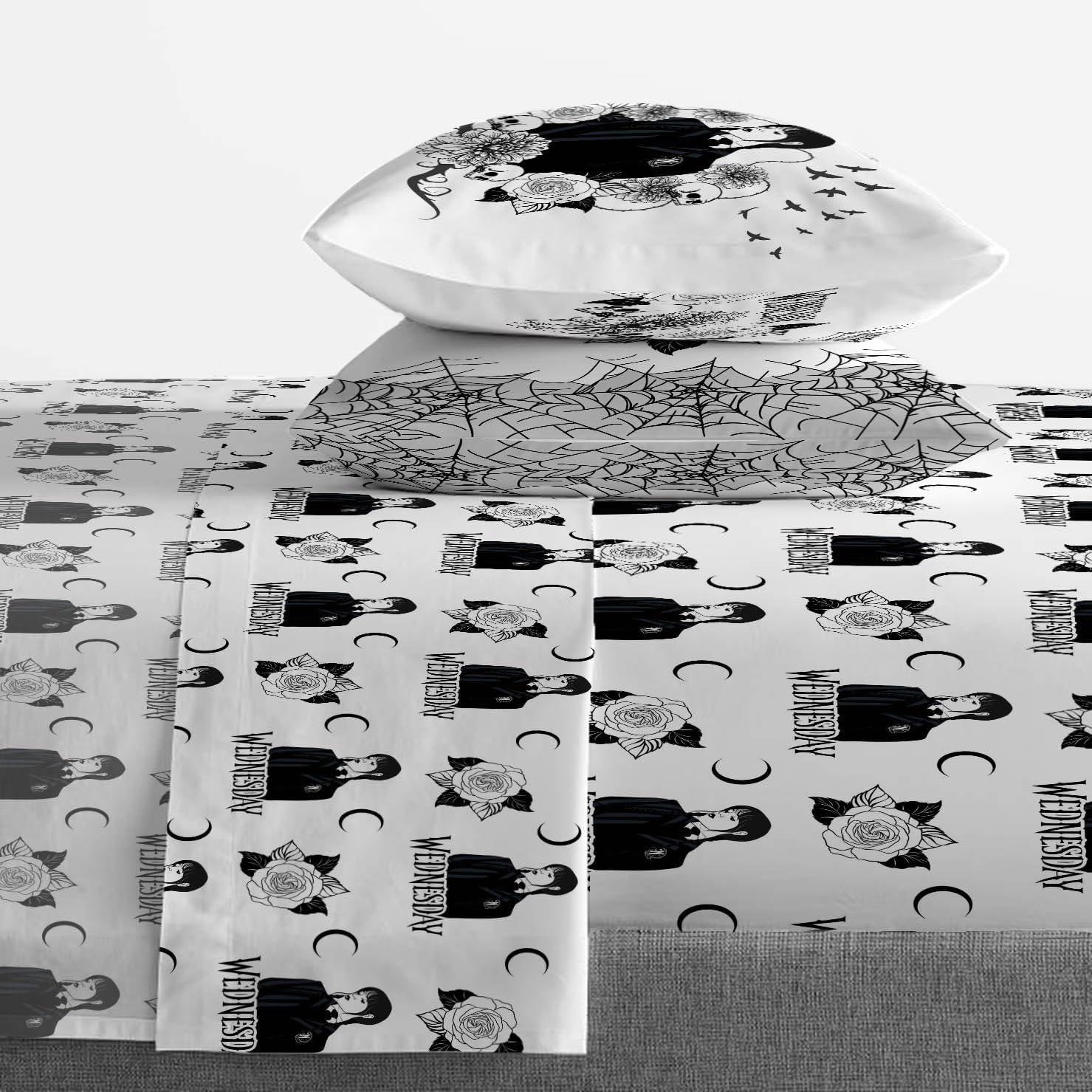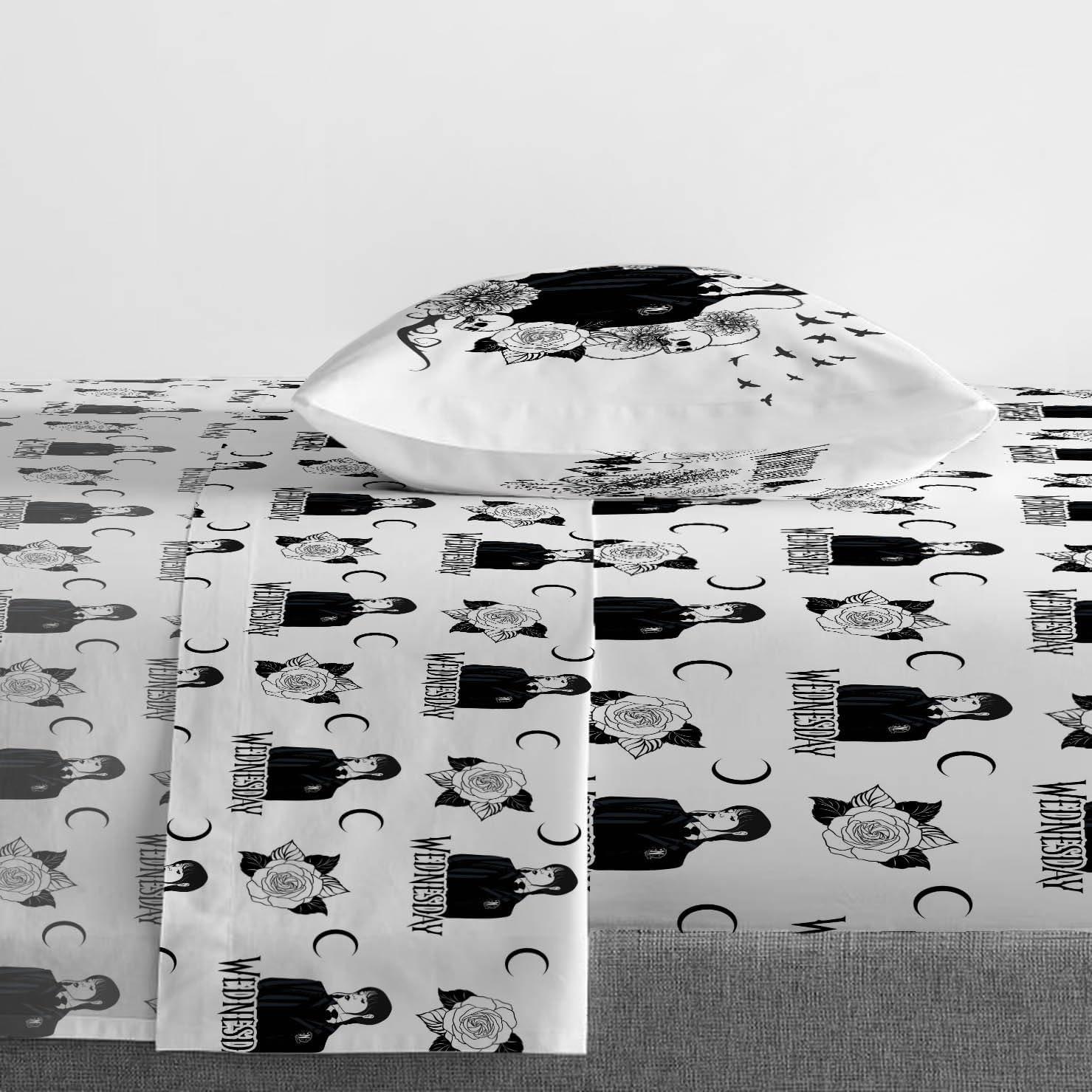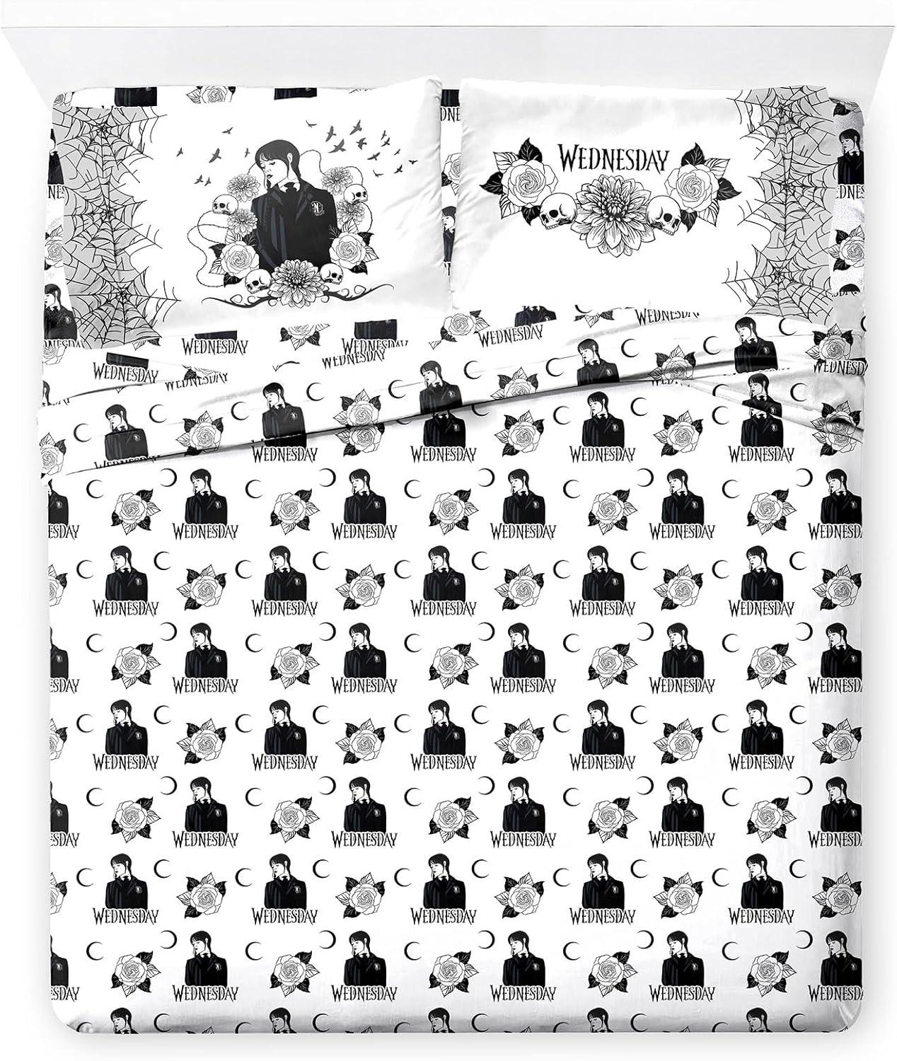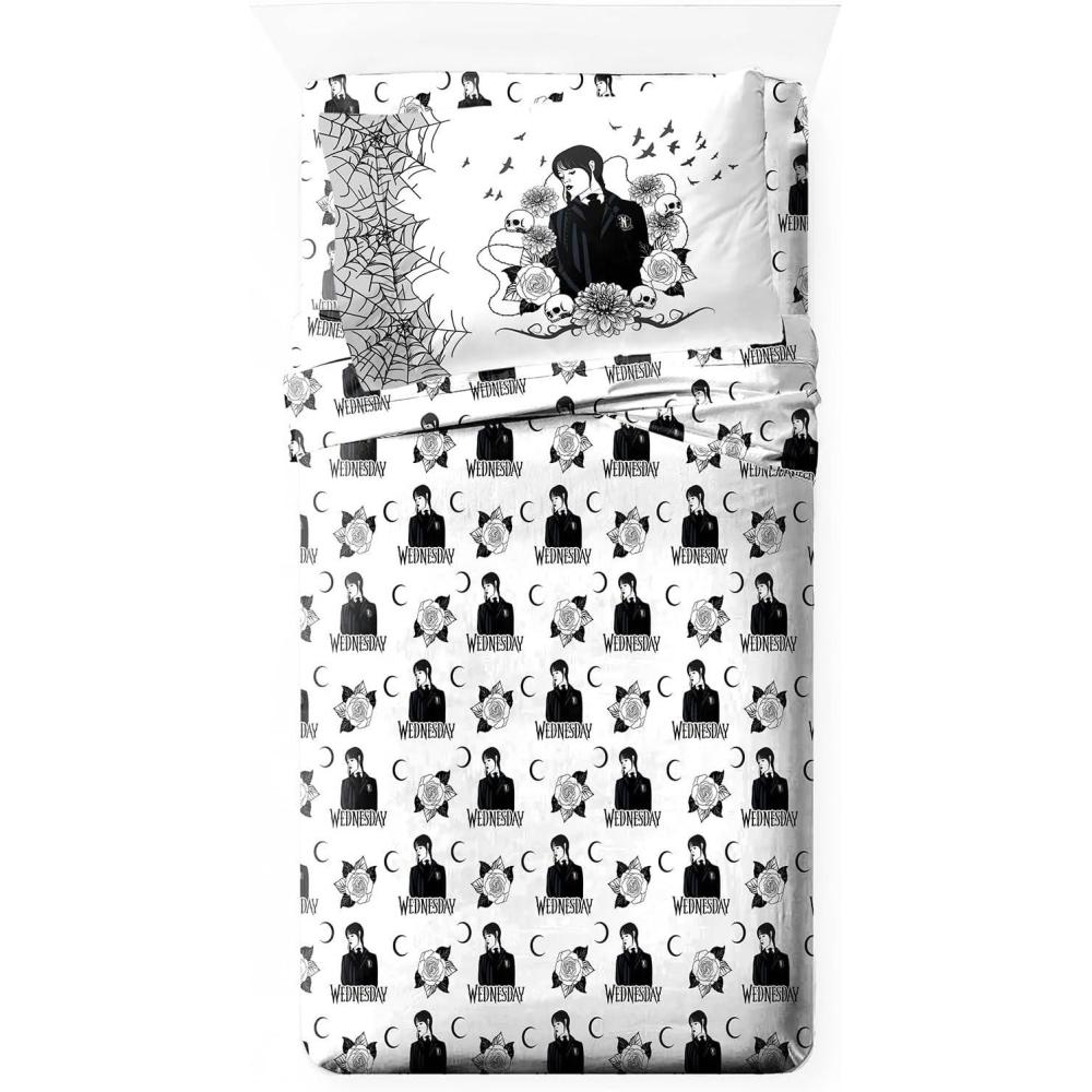 Jay Franco Kids Sheet Set with Fitted, Flat Sheets & Pillow Cover - Ultra-Soft Bedding with Pillowcase for Room Decor, White - Mickey Mouse, 4 Piece Full(White - Wednesday)
