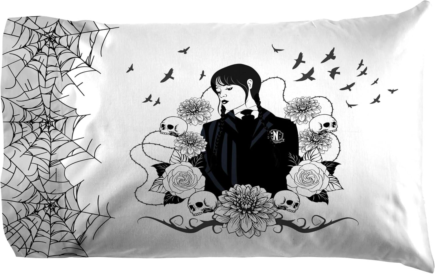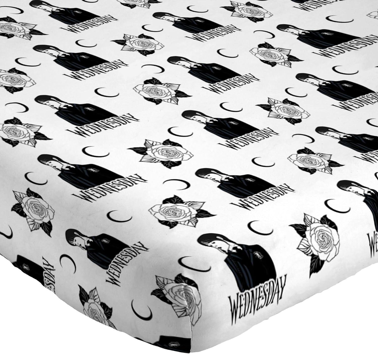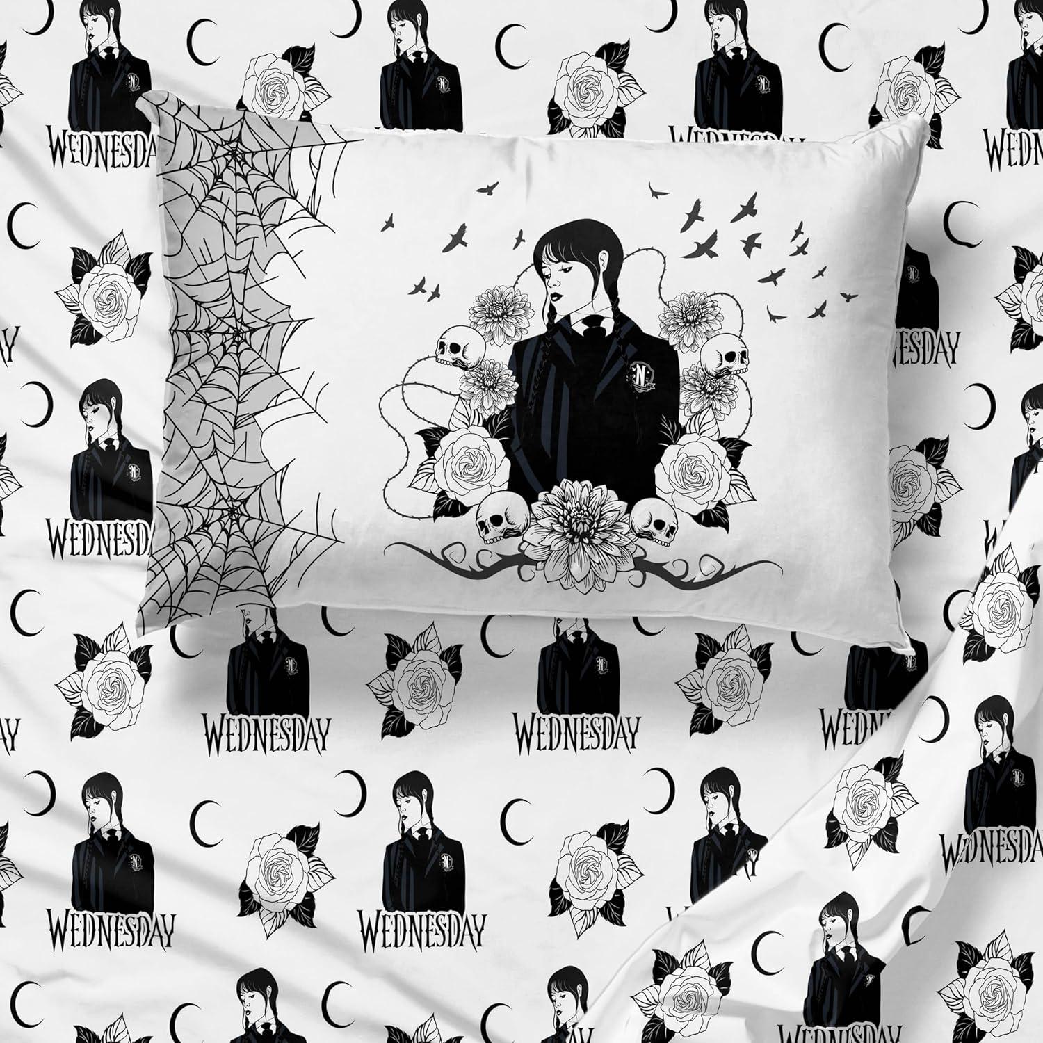 Jay Franco Kids Sheet Set with Fitted, Flat Sheets & Pillow Cover - Ultra-Soft Bedding with Pillowcase for Room Decor, White - Mickey Mouse, 4 Piece Full(White - Wednesday)
