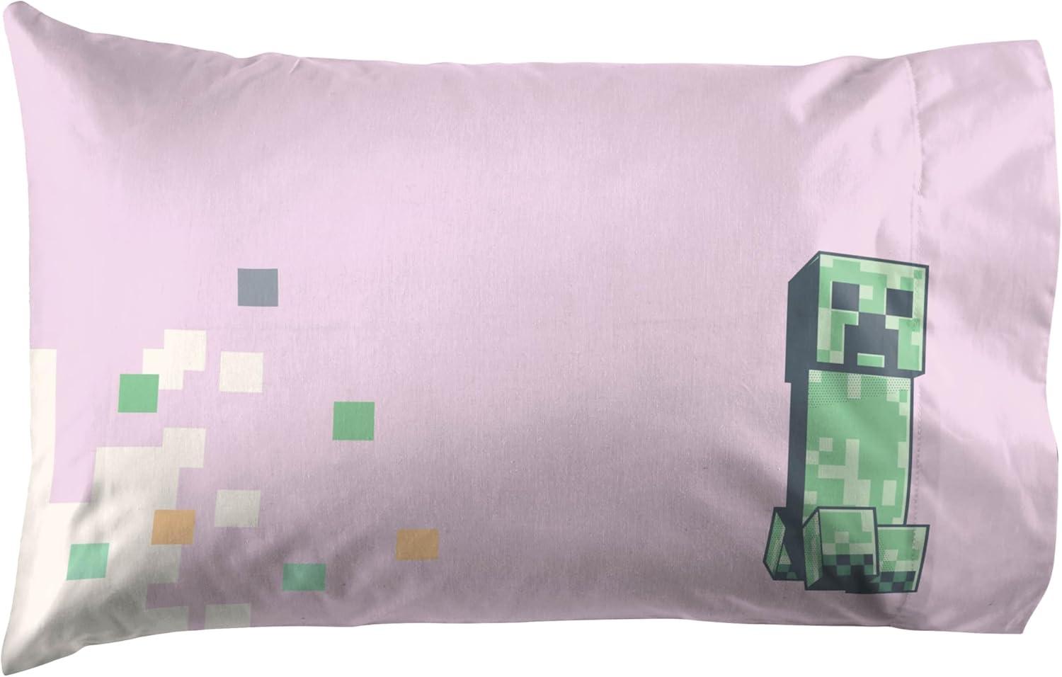 Jay Franco Kids Sheet Set with Fitted, Flat Sheets & Pillow Cover - Ultra-Soft Bedding with Pillowcase for Room Decor, White - Toy Story, 4 Piece Queen(Pink - Minecraft)