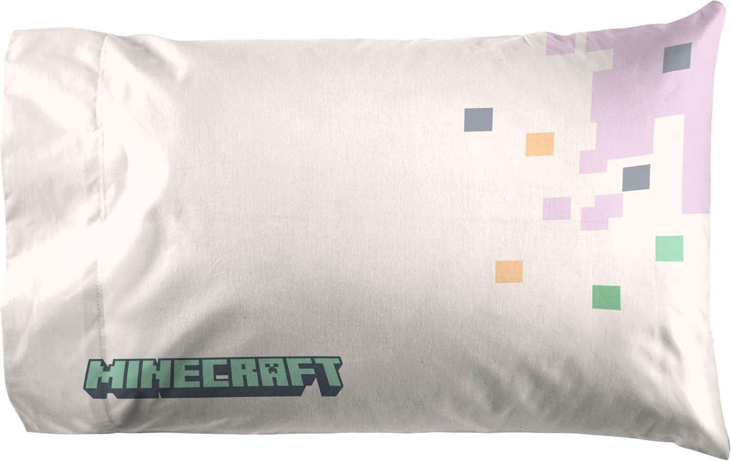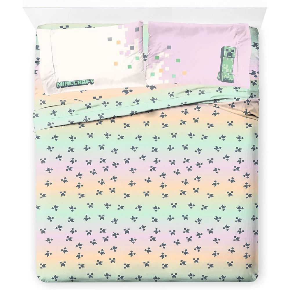 Jay Franco Kids Sheet Set with Fitted, Flat Sheets & Pillow Cover – Ultra-Soft Bedding with Pillowcase for Room Decor, White – Toy Story, 4 Piece Queen(Pink – Minecraft)