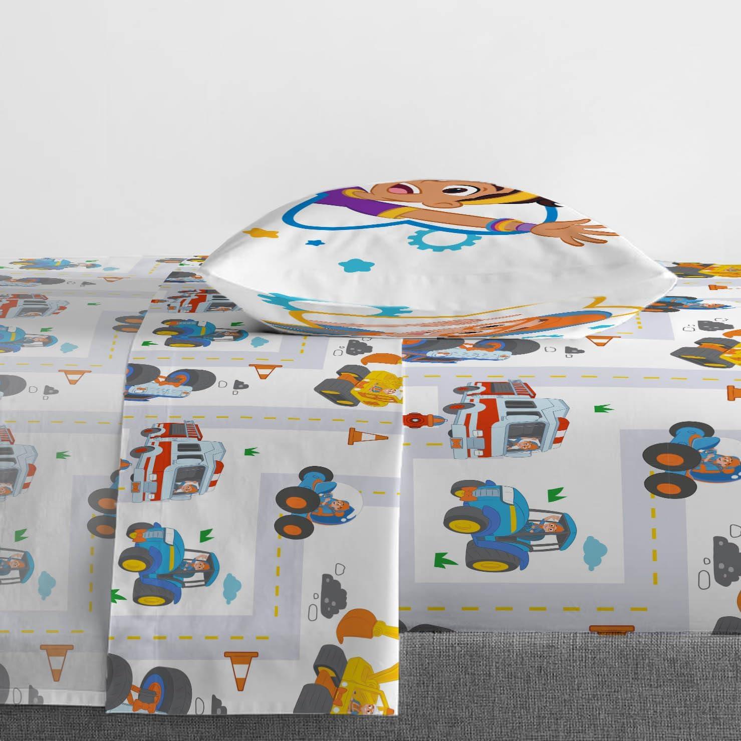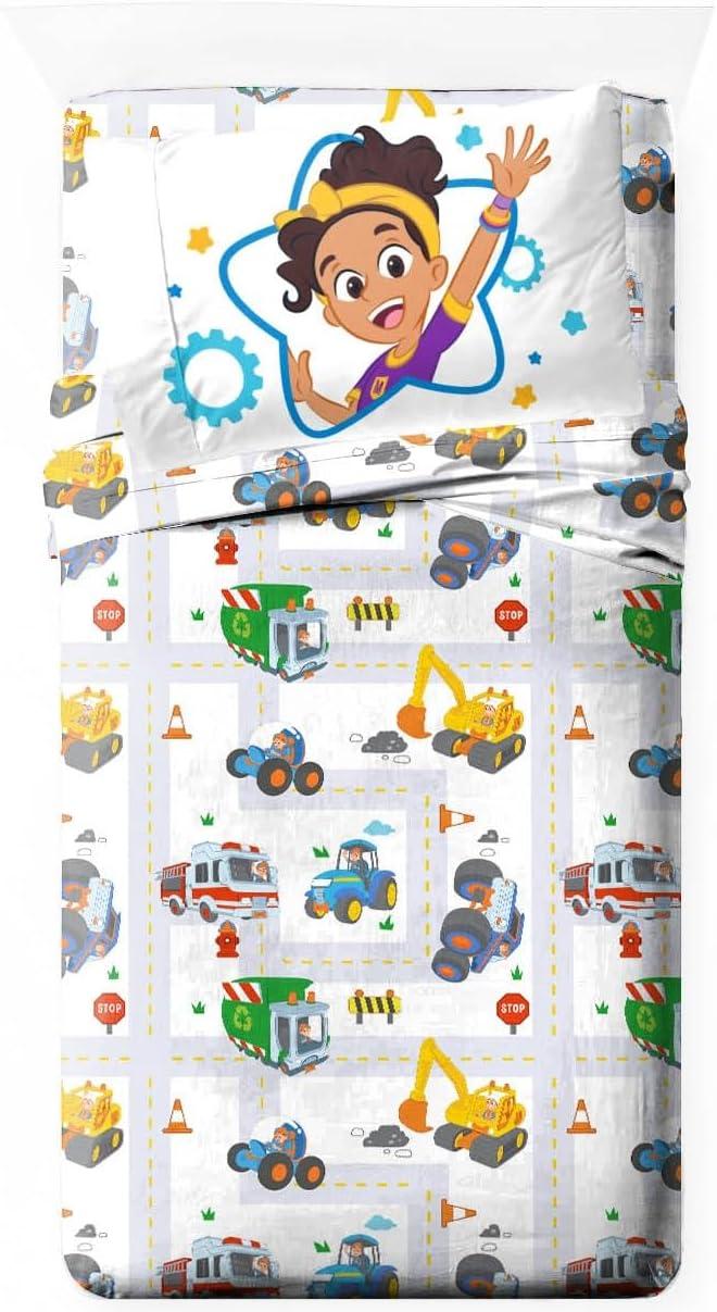 Jay Franco Kids Sheet Set with Fitted, Flat Sheets & Pillow Cover - Ultra-Soft Bedding with Pillowcase for Room Decor, White - Toy Story, 4 Piece Queen(White - Blippi)