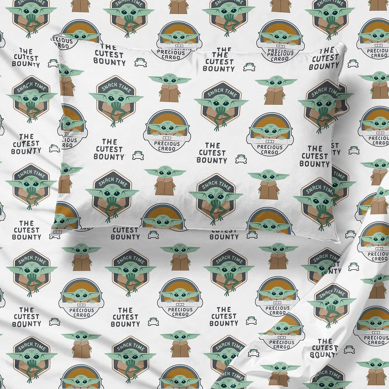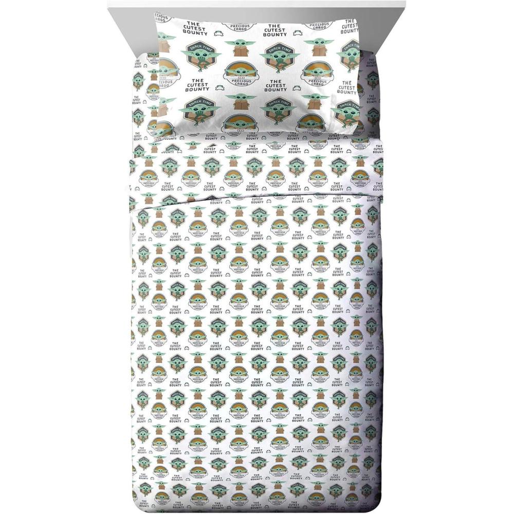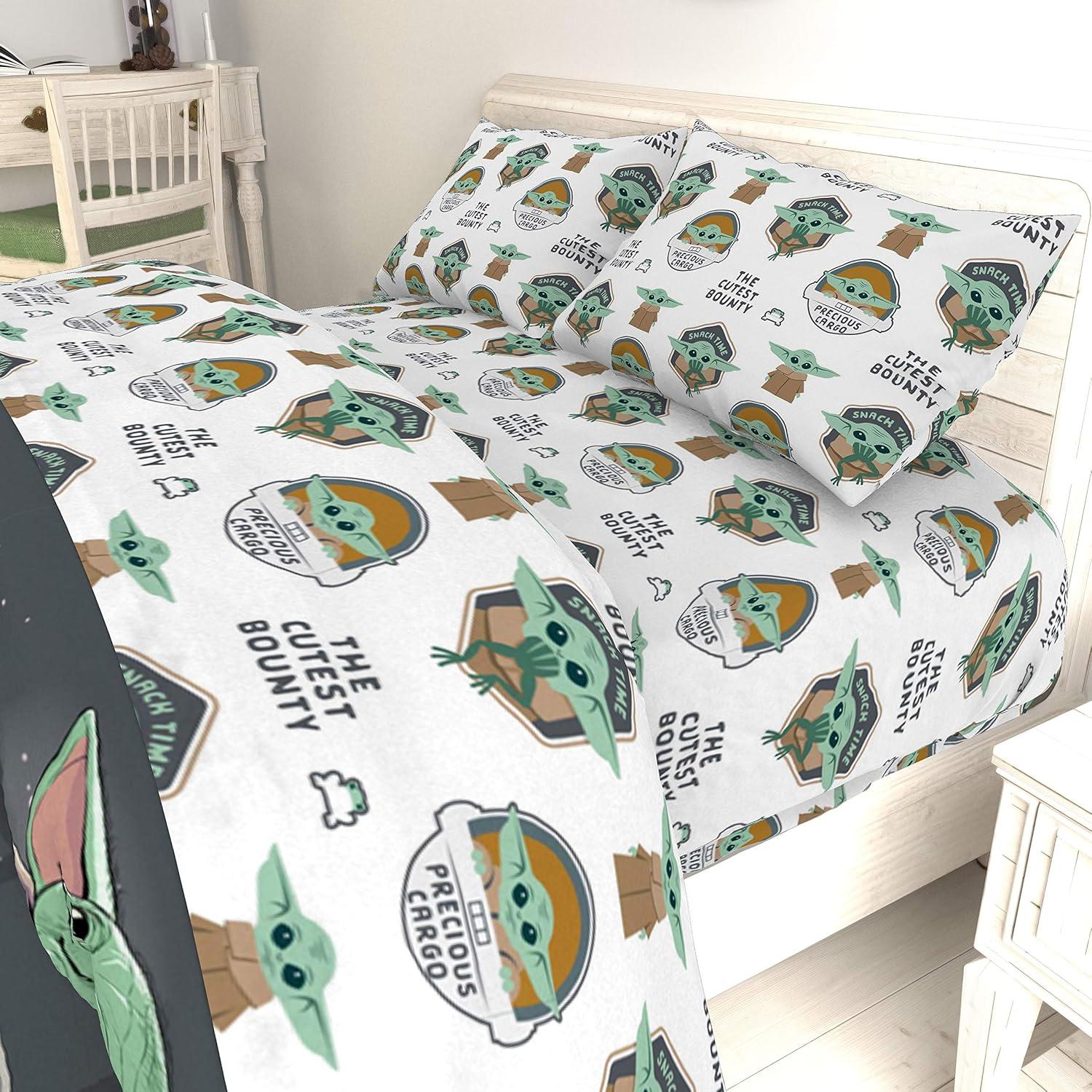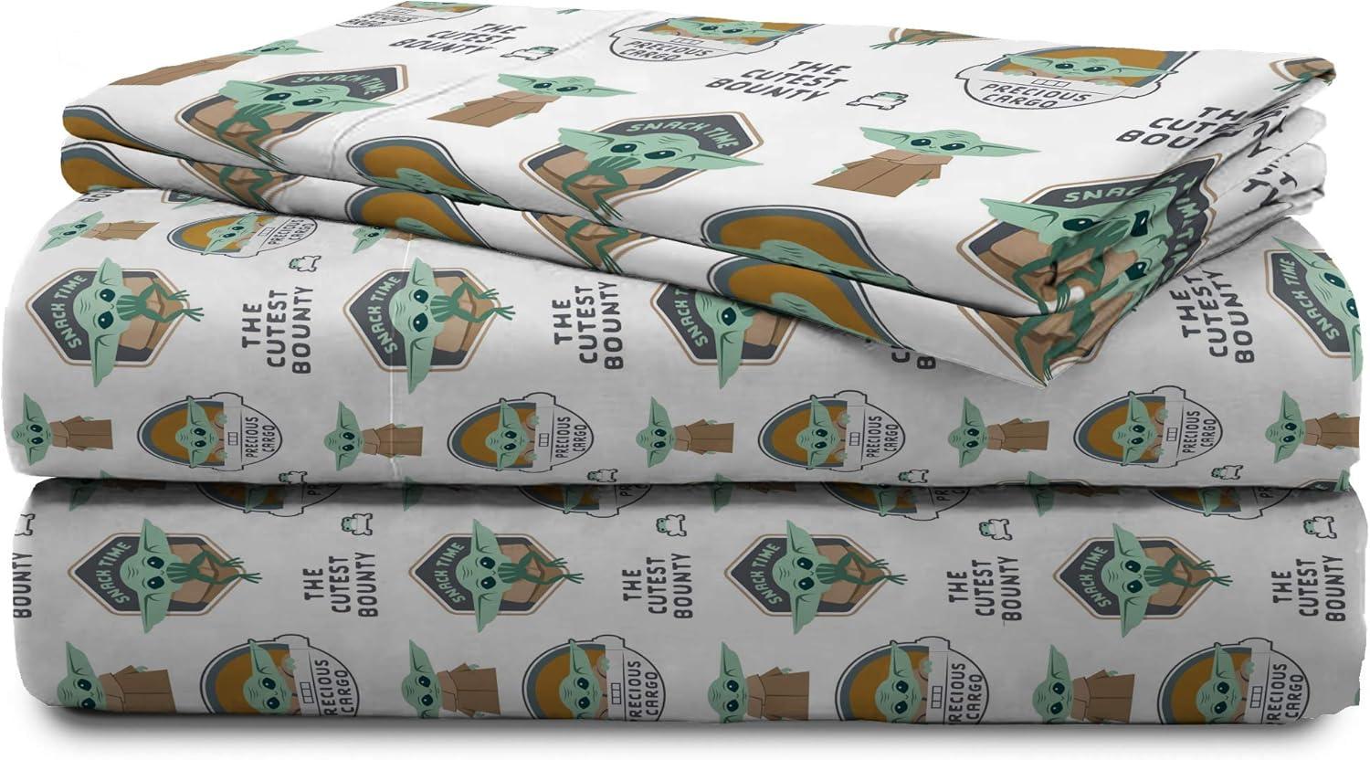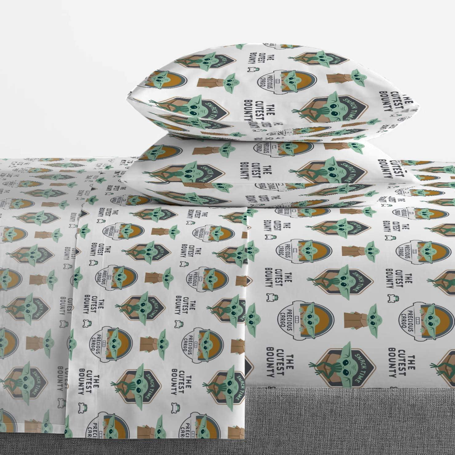 Jay Franco Kids Sheet Set with Fitted, Flat Sheets & Pillow Cover - Ultra-Soft Bedding with Pillowcase for Room Decor, White - Toy Story, 4 Piece Queen(White - Mandalorian)