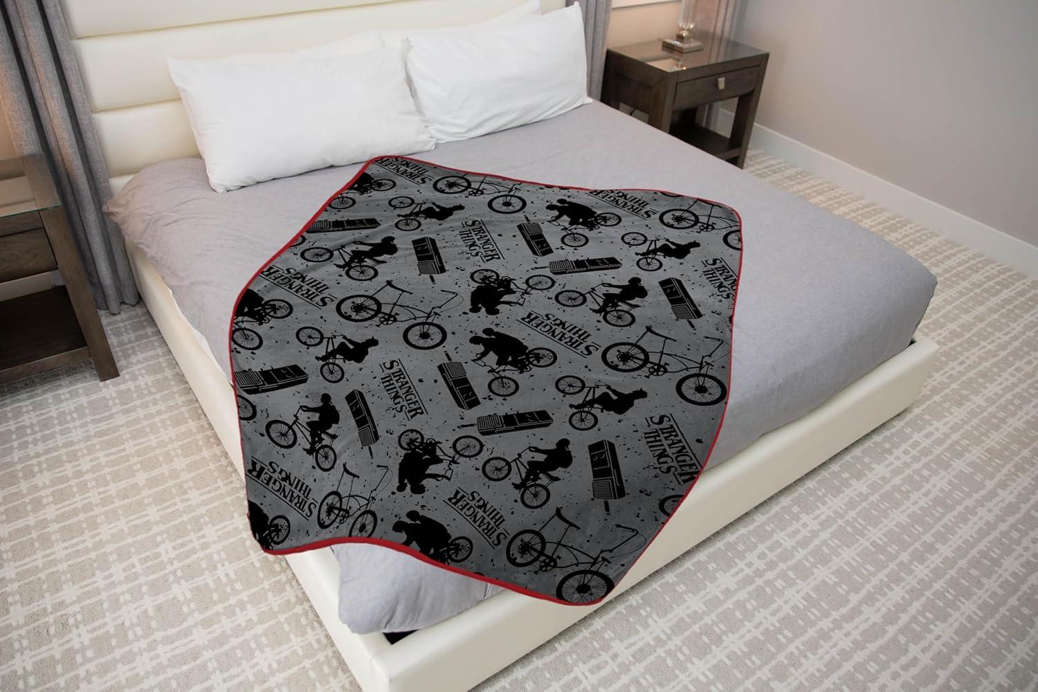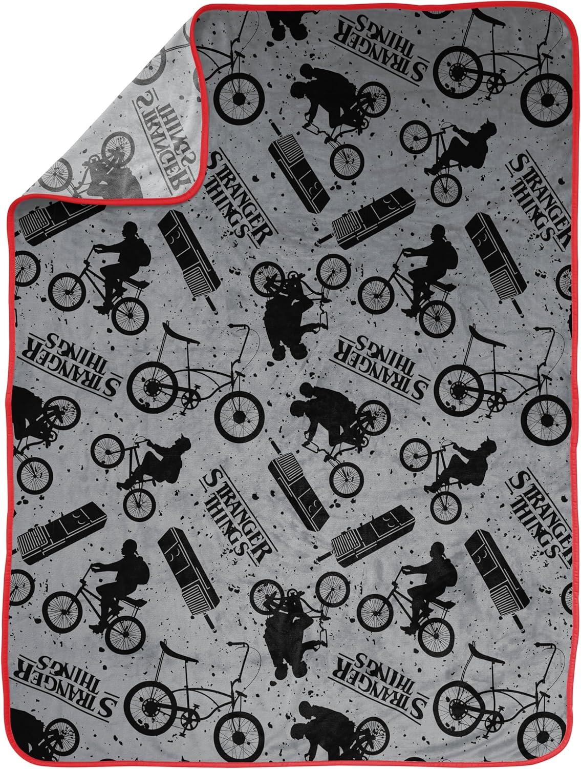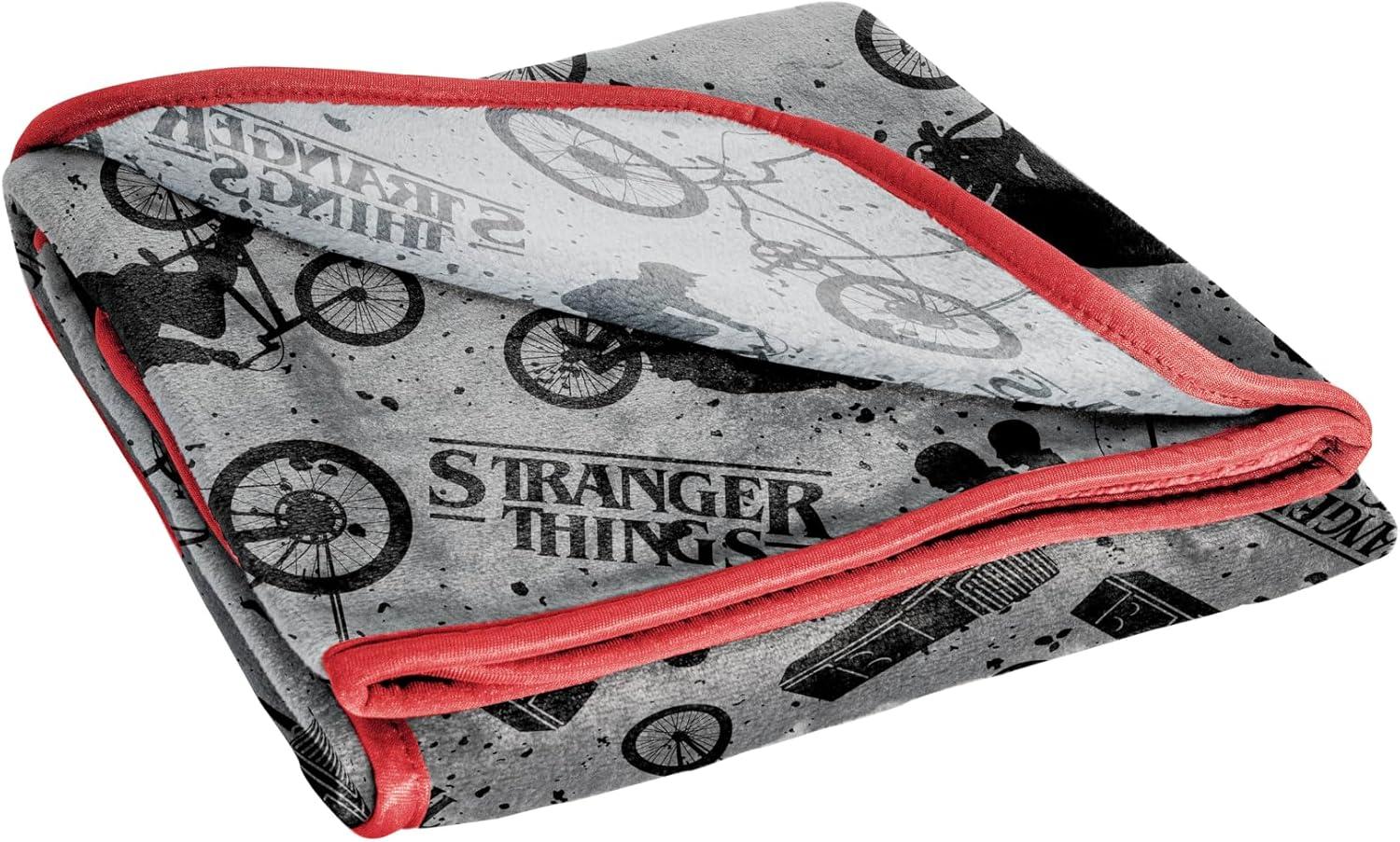 Step into the world of Hawkins with the Stranger Things Plush Throw Blanket. Designed for comfort and fandom style, this ultra-soft throw is crafted from 100% brushed microfiber and sized at 60″ x 46″—perfect for curling up during TV binges, lounging on the couch, or adding a bold pop of style to your bedroom or dorm. Featuring iconic silhouettes of the kids on bikes, Hawkins Lab vans, and the Stranger Things logo, this blanket captures the mystery, nostalgia, and adventure of the Upside Down. Lightweight yet warm, it’s an all-season essential that works as both a cozy companion and a decorative statement piece. Parents and fans alike will appreciate the machine washable, durable fabric that stays soft and vibrant wash after wash. Whether gifted for birthdays, holidays, or simply as a treat for yourself, this officially licensed Stranger Things blanket is a must-have collectible for fans of the hit Netflix series.