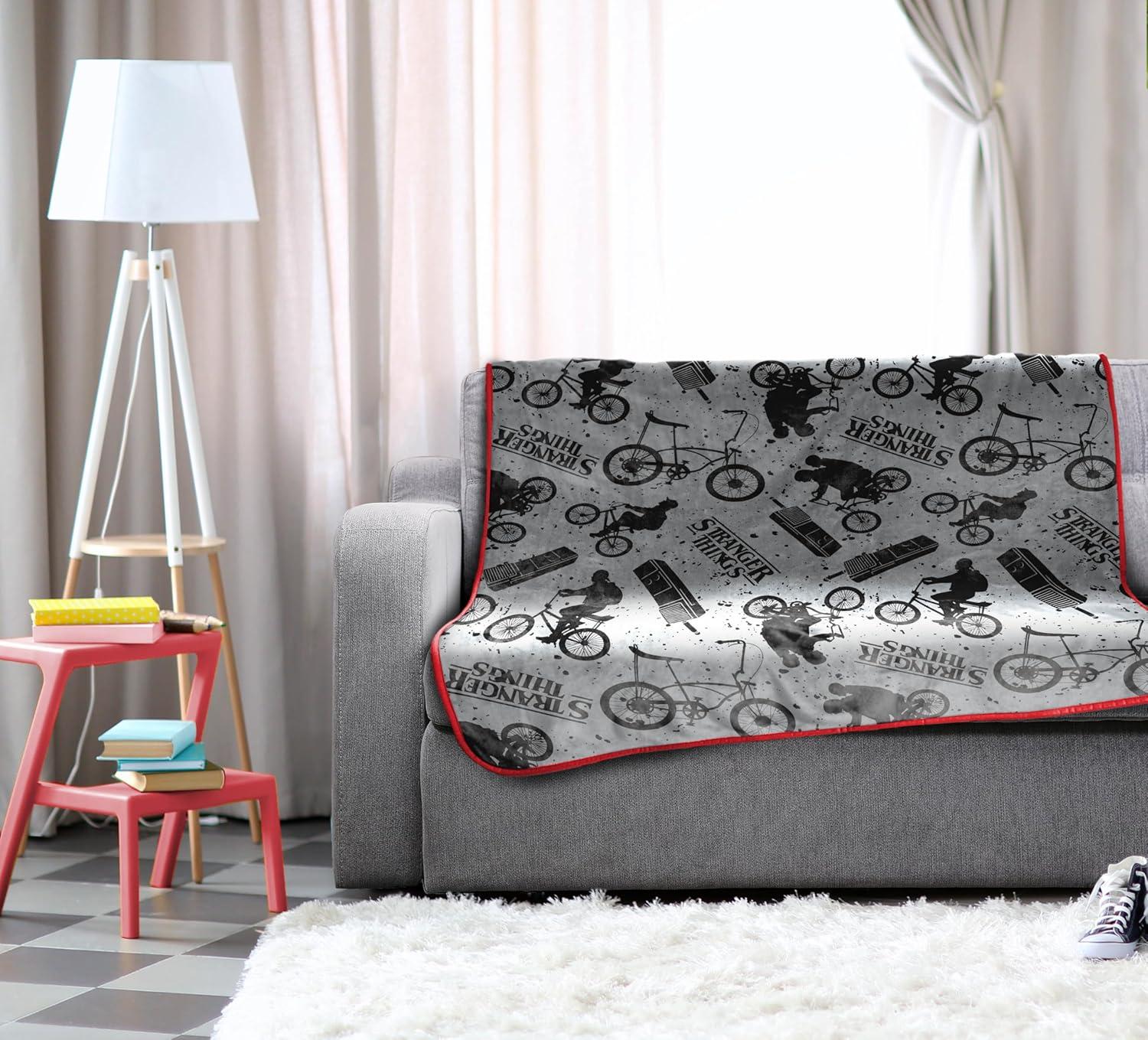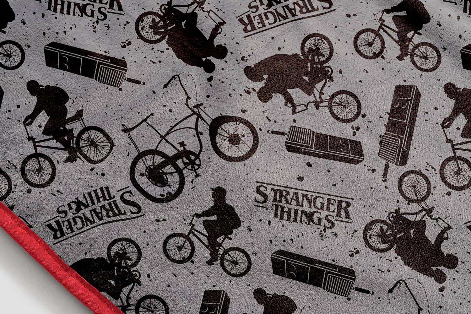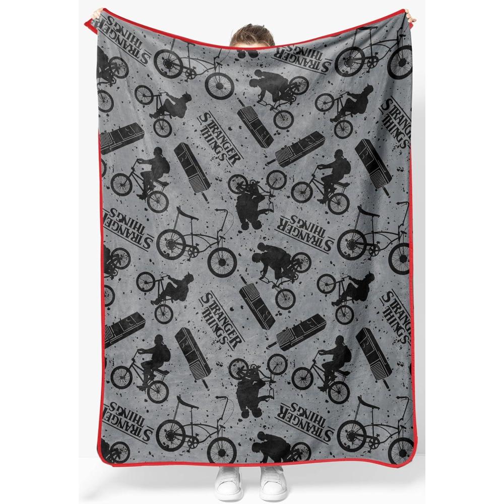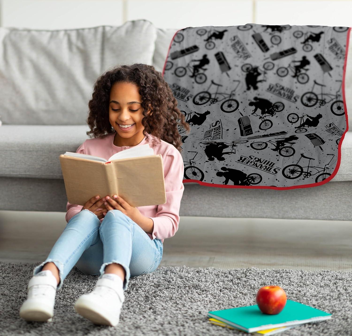 Step into the world of Hawkins with the Stranger Things Plush Throw Blanket. Designed for comfort and fandom style, this ultra-soft throw is crafted from 100% brushed microfiber and sized at 60″ x 46″—perfect for curling up during TV binges, lounging on the couch, or adding a bold pop of style to your bedroom or dorm. Featuring iconic silhouettes of the kids on bikes, Hawkins Lab vans, and the Stranger Things logo, this blanket captures the mystery, nostalgia, and adventure of the Upside Down. Lightweight yet warm, it’s an all-season essential that works as both a cozy companion and a decorative statement piece. Parents and fans alike will appreciate the machine washable, durable fabric that stays soft and vibrant wash after wash. Whether gifted for birthdays, holidays, or simply as a treat for yourself, this officially licensed Stranger Things blanket is a must-have collectible for fans of the hit Netflix series.