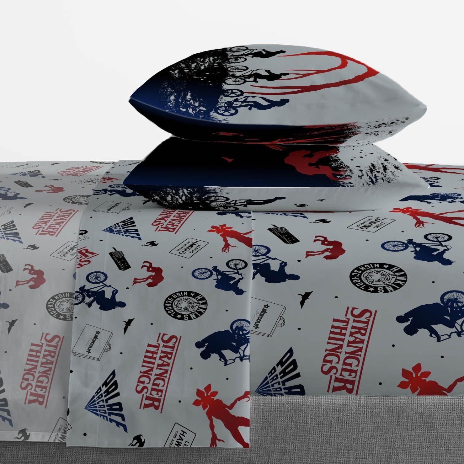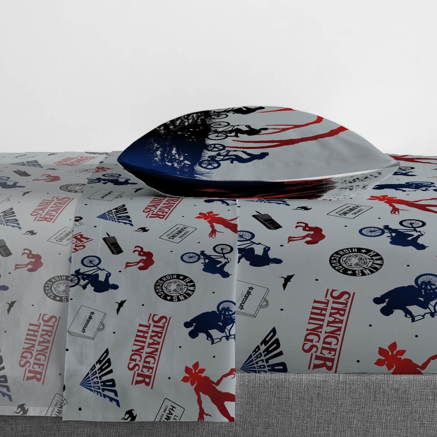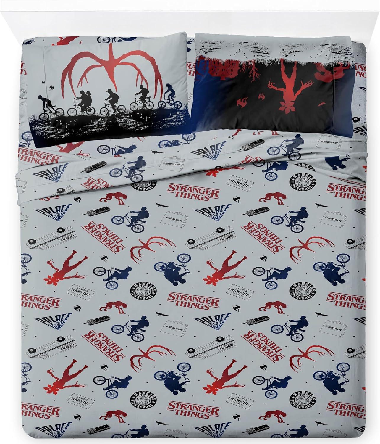Jay Franco Sheet Set with Fitted, Flat Sheets & Pillow Cover - Ultra-Soft Bedding with Pillowcase for Room Decor, Beige - Fantastic Four, 3 Piece Twin(Grey - Stranger Things)