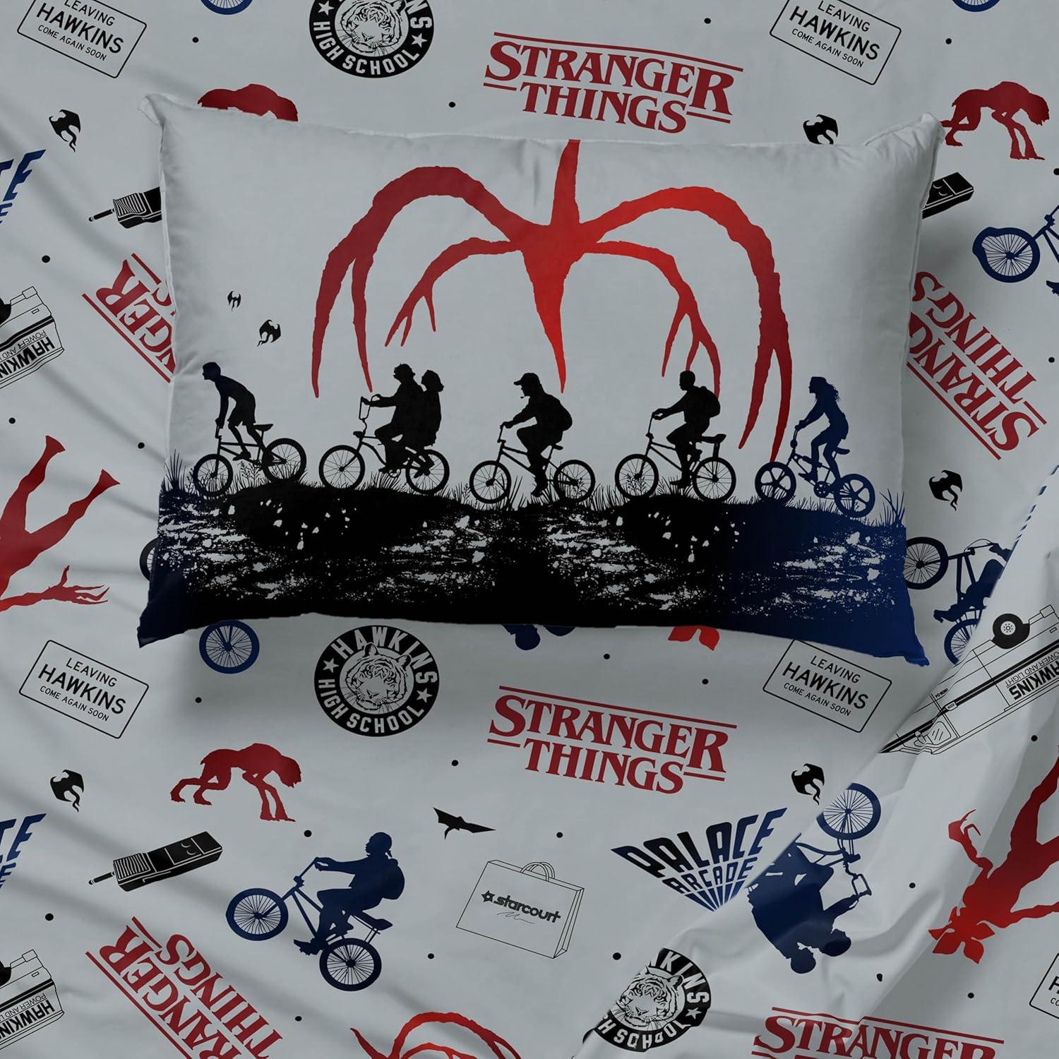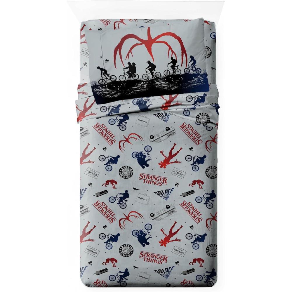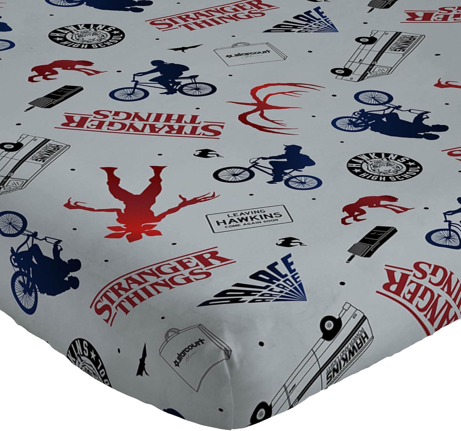 Jay Franco Sheet Set with Fitted, Flat Sheets & Pillow Cover - Ultra-Soft Bedding with Pillowcase for Room Decor, Beige - Fantastic Four, 3 Piece Twin(Grey - Stranger Things)