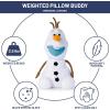 Bring on all the sweet dreams with this Frozen Olaf Fuzzy Weighted Pillow Buddy! This makes a great gift for the Disney fan in your life! The fun size plush can upgrade any space with a playful touch and add an overall adorable vibe to your bedroom and bedtime! Made with 100% polyester microfiber, its perfectly balanced weight offers comfort and support that is ideal for bedtime, naptime, or relaxing moments. Olaf plush pillow buddy measures 20 inches, with 2.5 pounds of weighted beads (not removable). Easy care, spot clean only.
